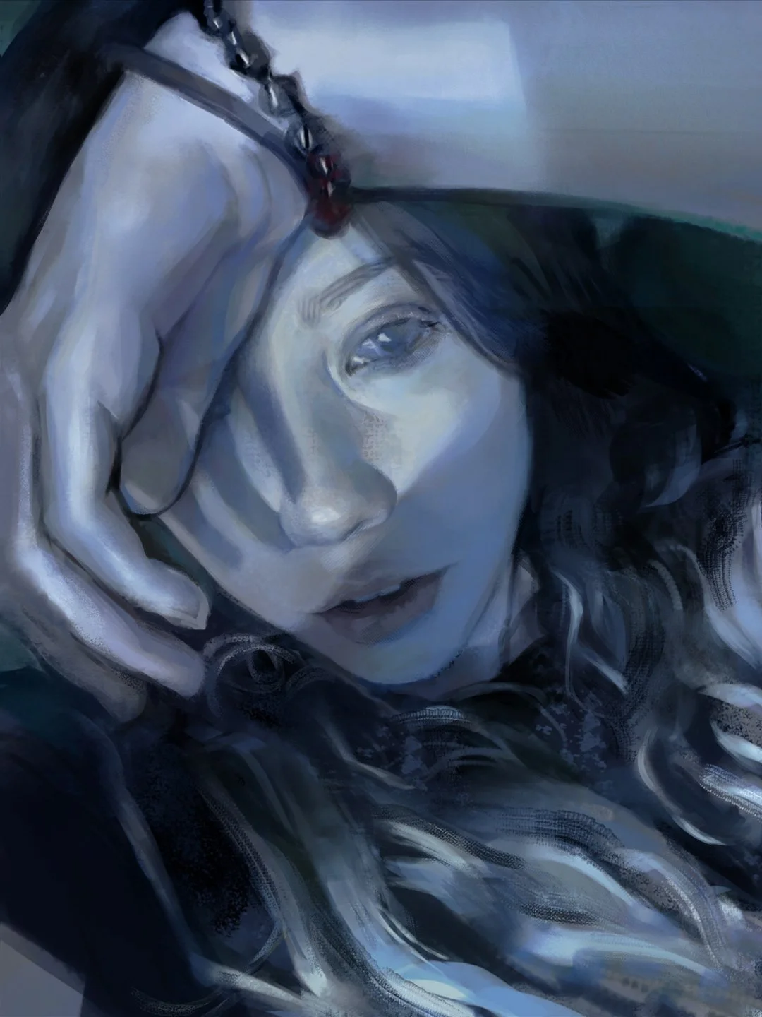 evelyn 3, pintura digital sobre pintura analógica digitalizada, 2024
